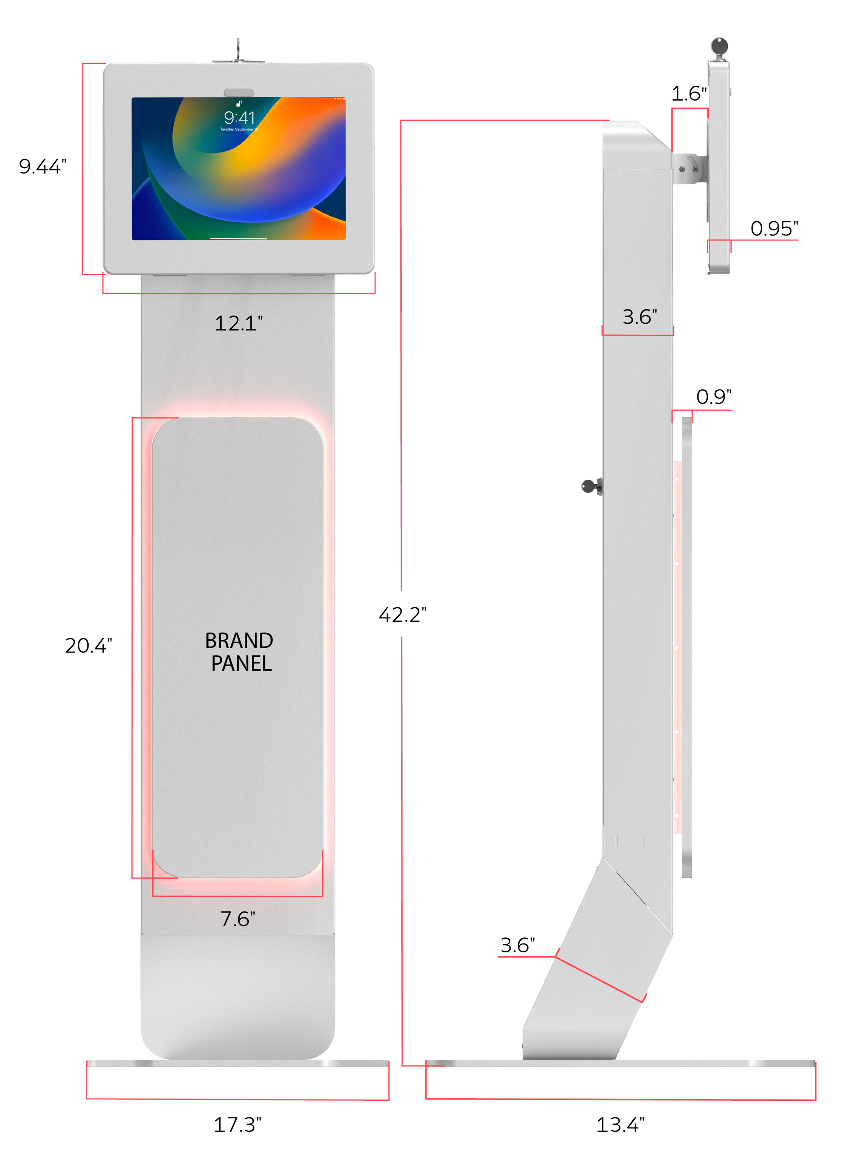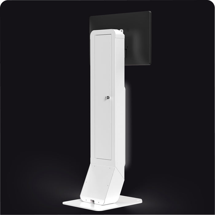 Integrated LED Floor Stand with Premium Locking Enclosure (White) for Medium Tablets