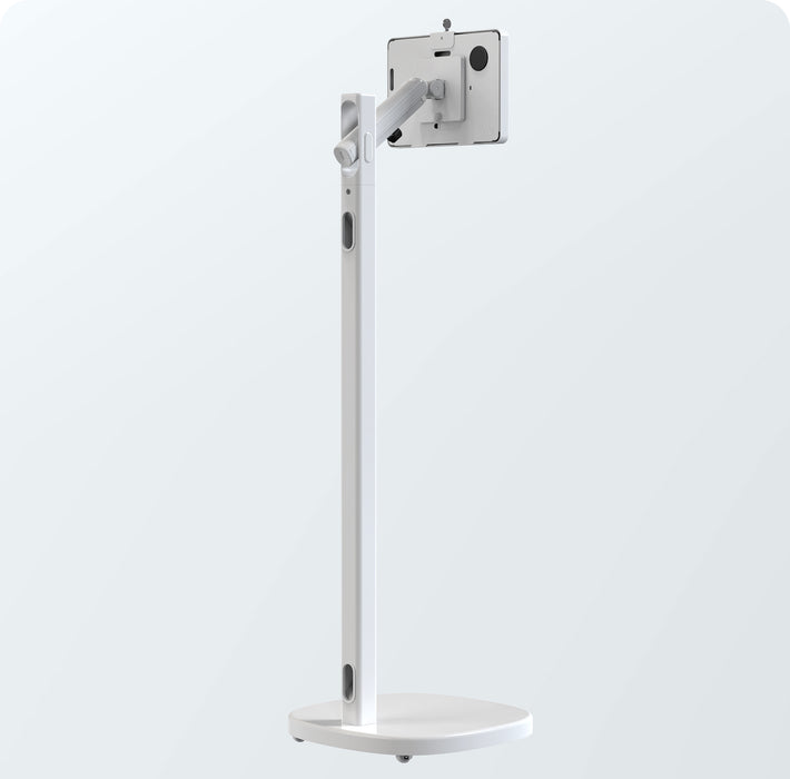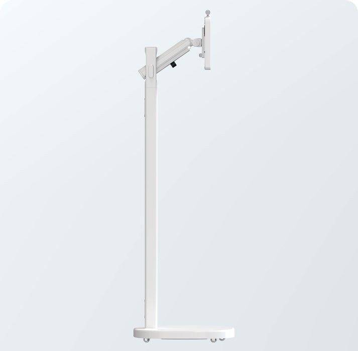 Mobile Rolling Spring Adjustable Floor Stand with Premium Locking Enclosure (White) for Small Tablets