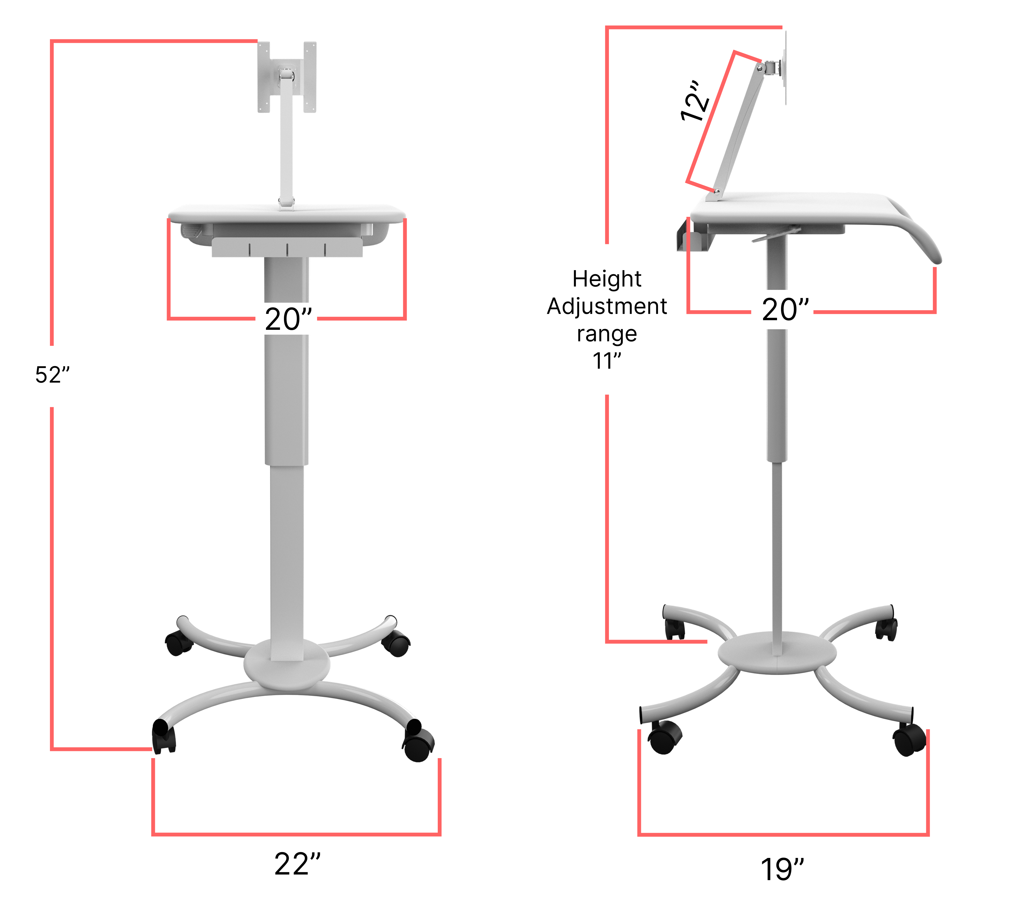 Height-Adjustable Rolling Medical Workstation Cart with VESA Plate