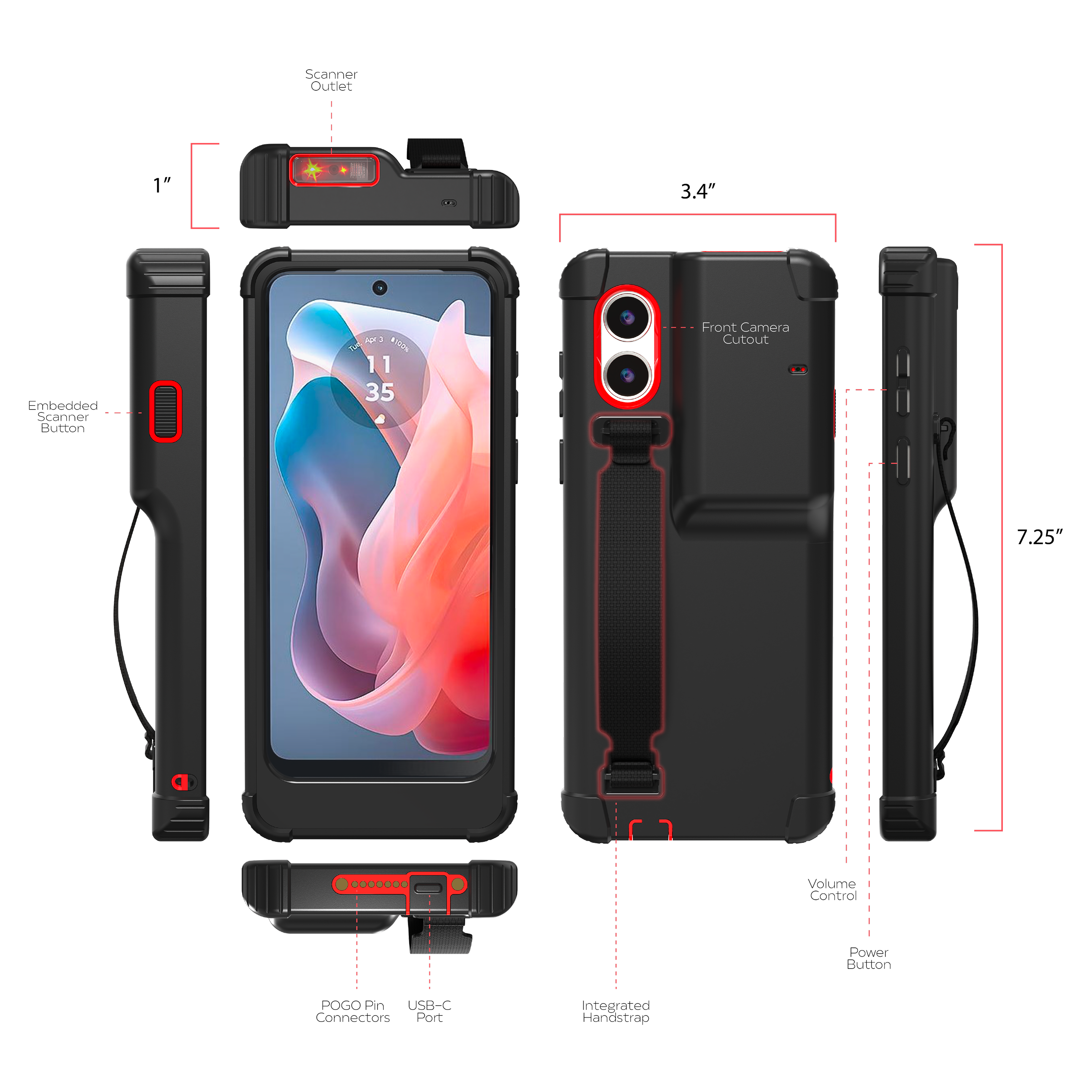 Protective Pogo Charging Case with Integrated Honeywell Scanner for Phone