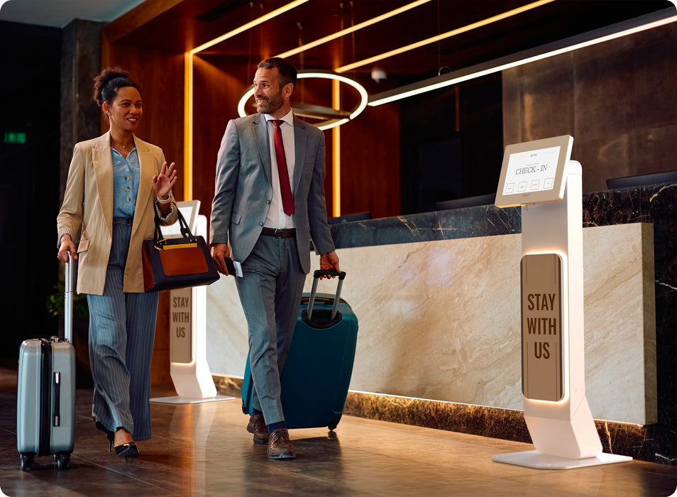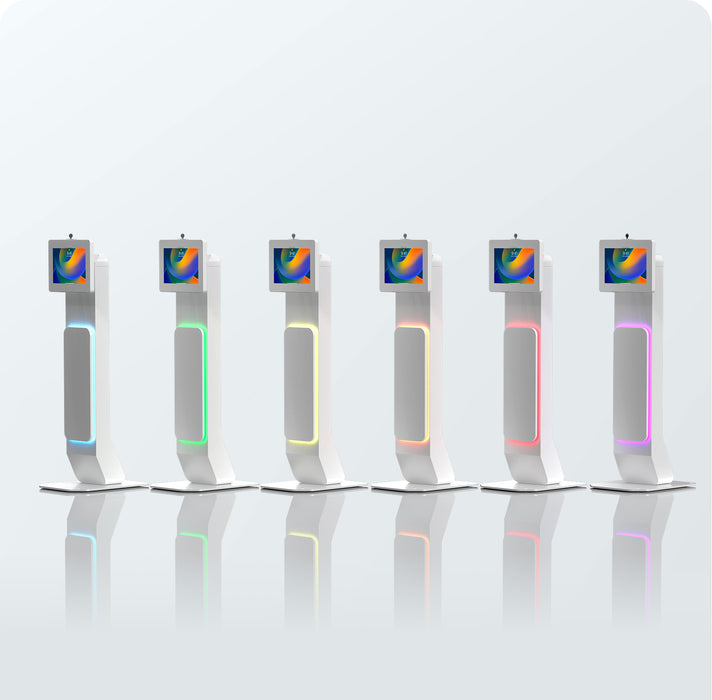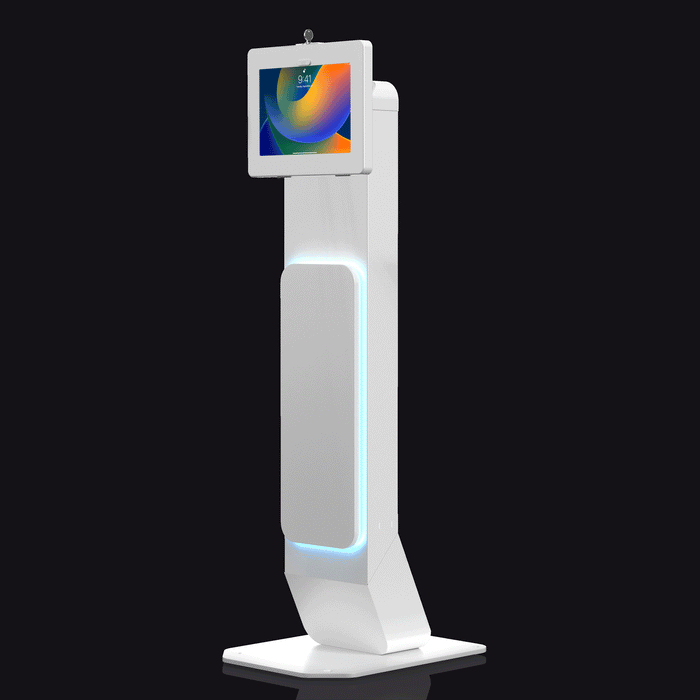 Integrated LED Floor Stand with Premium Locking Enclosure (White) for Medium Tablets