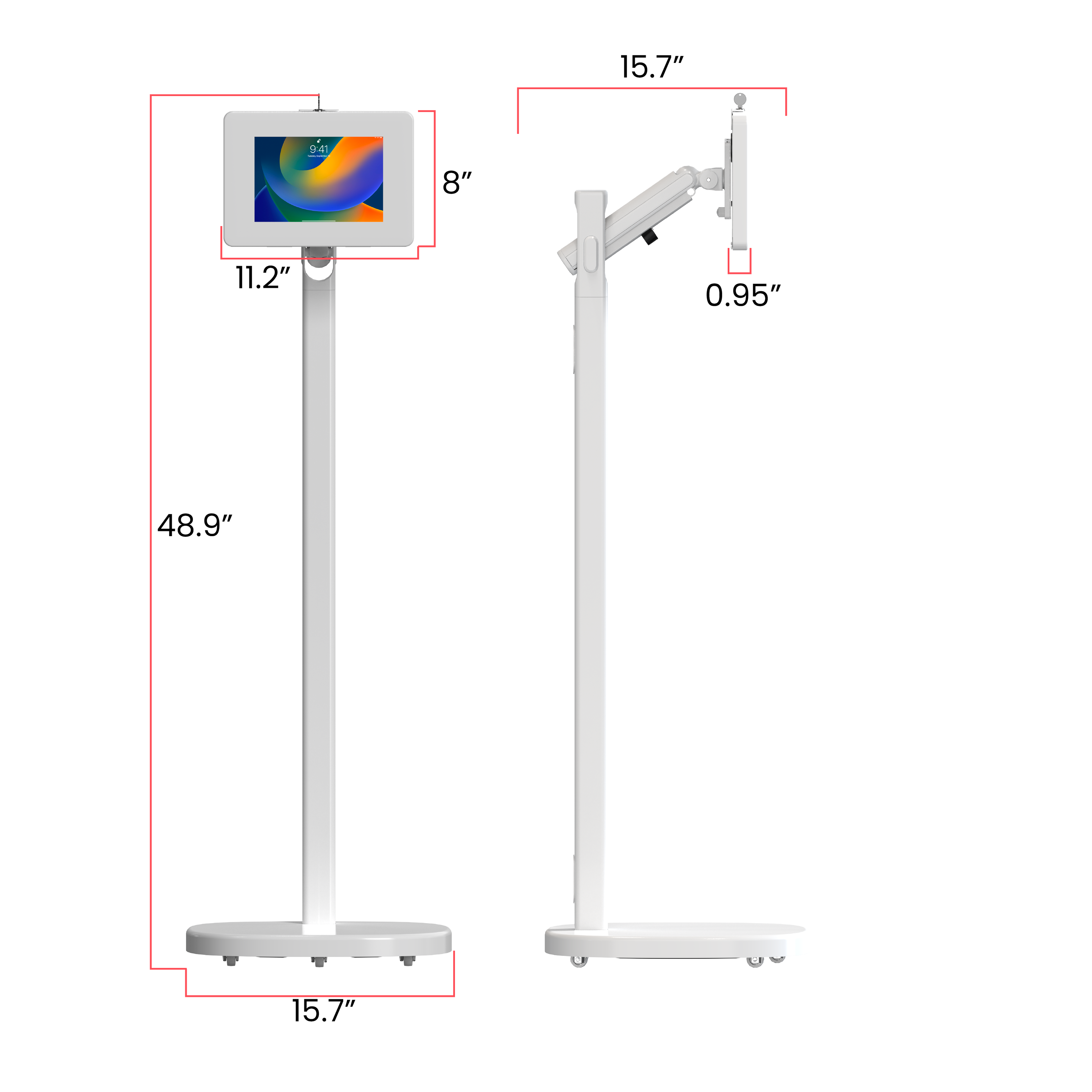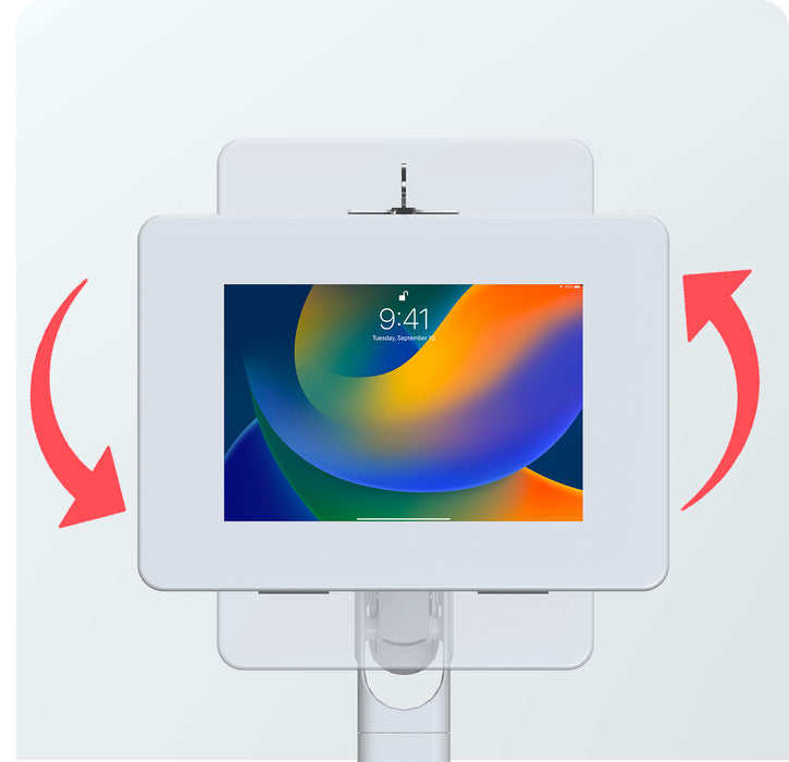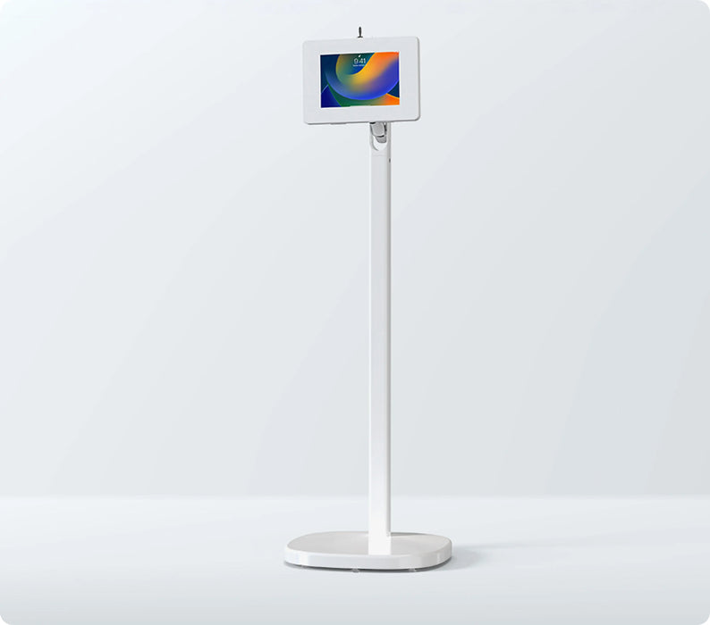 Mobile Rolling Spring Adjustable Floor Stand with Premium Locking Enclosure (White) for Small Tablets