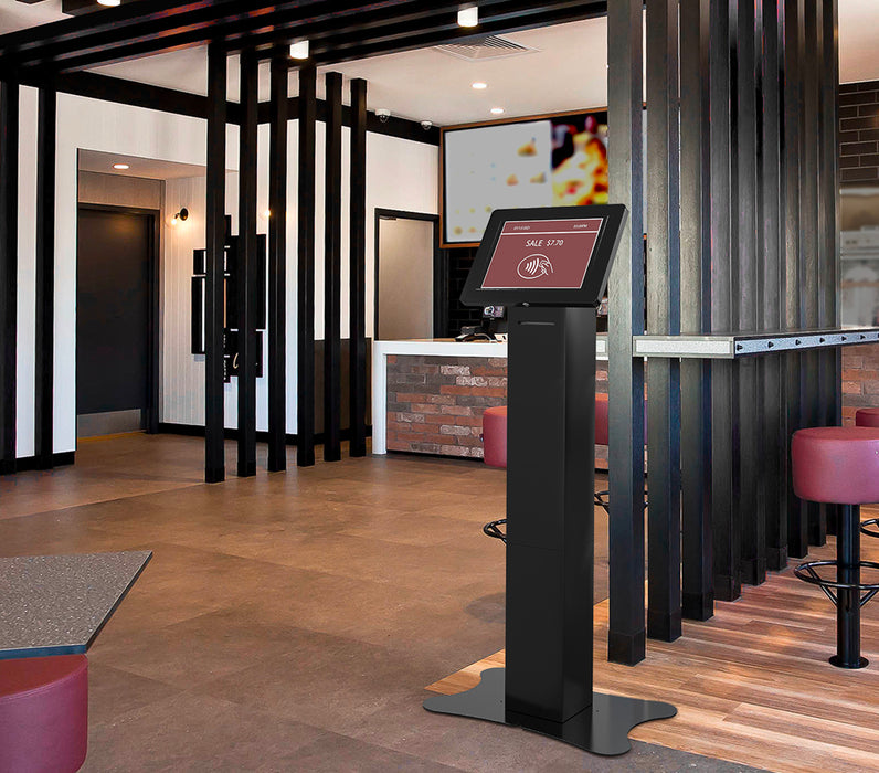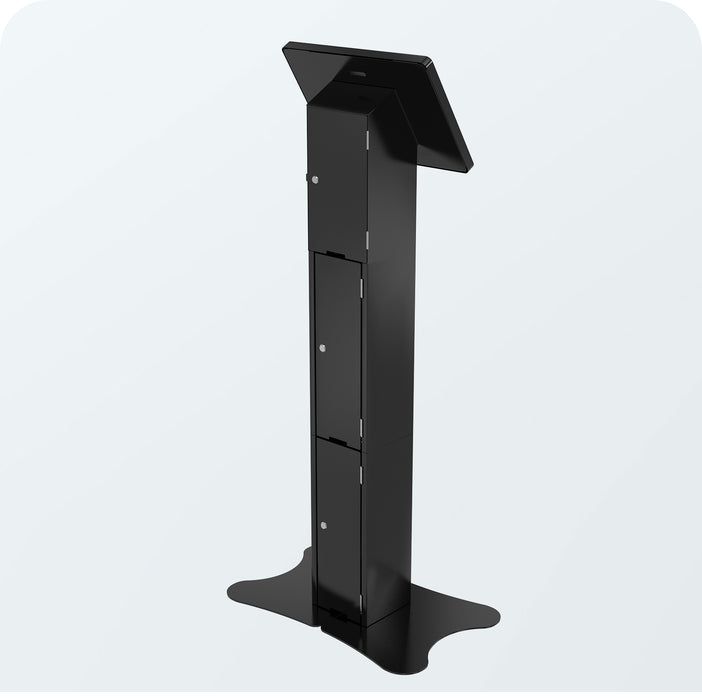 Premium Locking Floor Stand Kiosk with Universal Security Enclosure, Storage & Cable Management