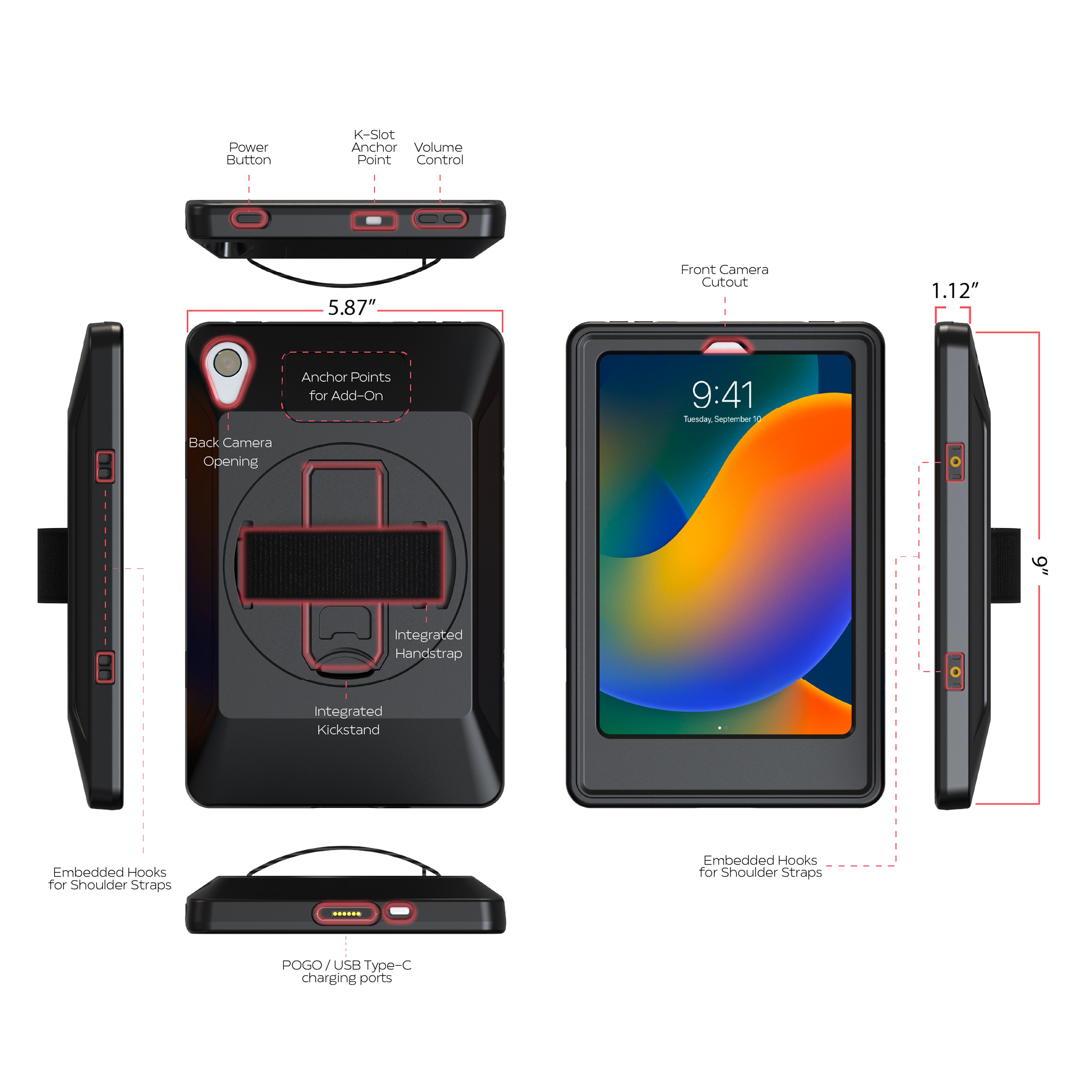 VersaGuard Protective Tablet Case with POGO Charging, Built-In Kick Stand and Hand Strap for iPad Mini 6/7